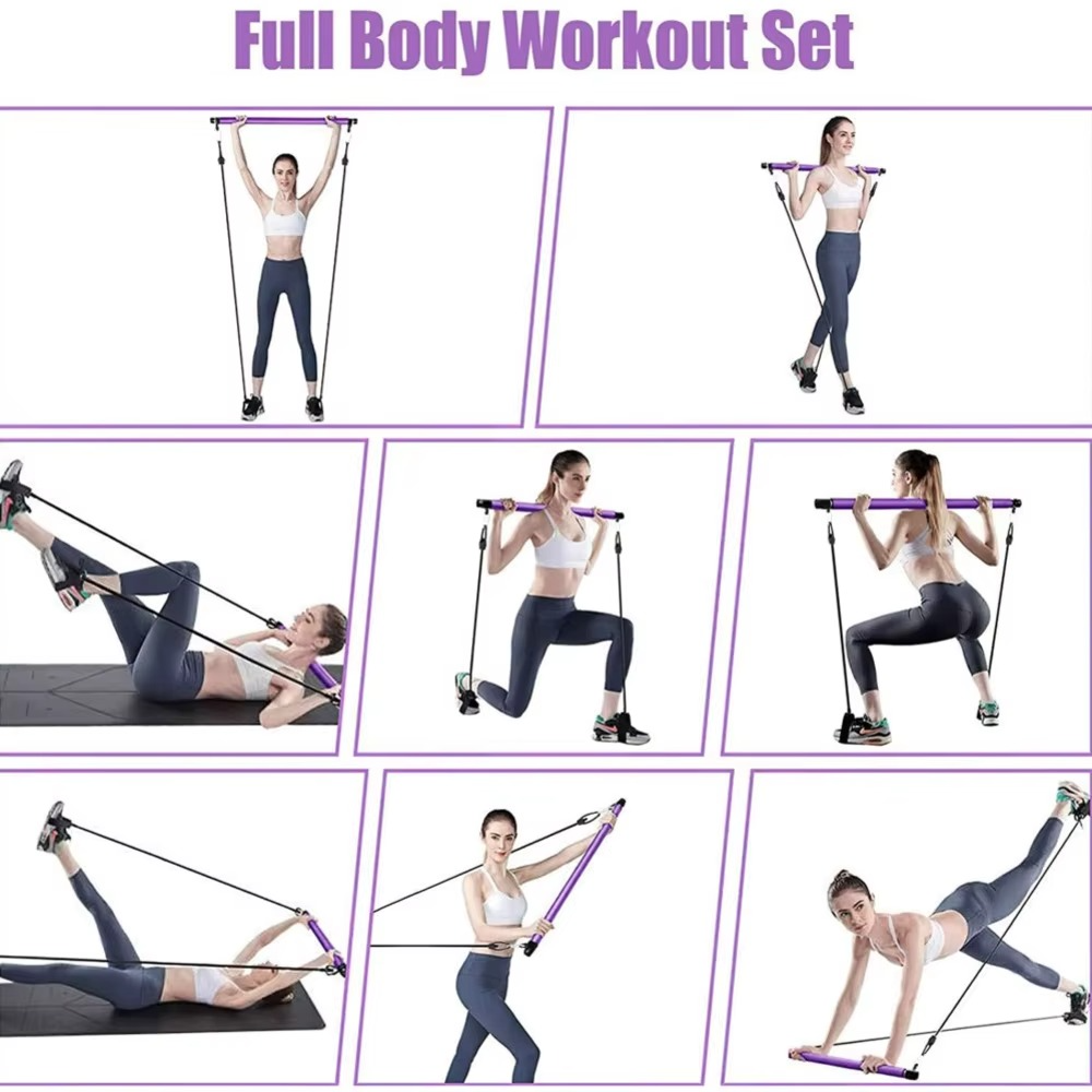 🔹 المرفقات: عصا بيلاتس + أربطة مقاومة + حلقات تثبيت القدم