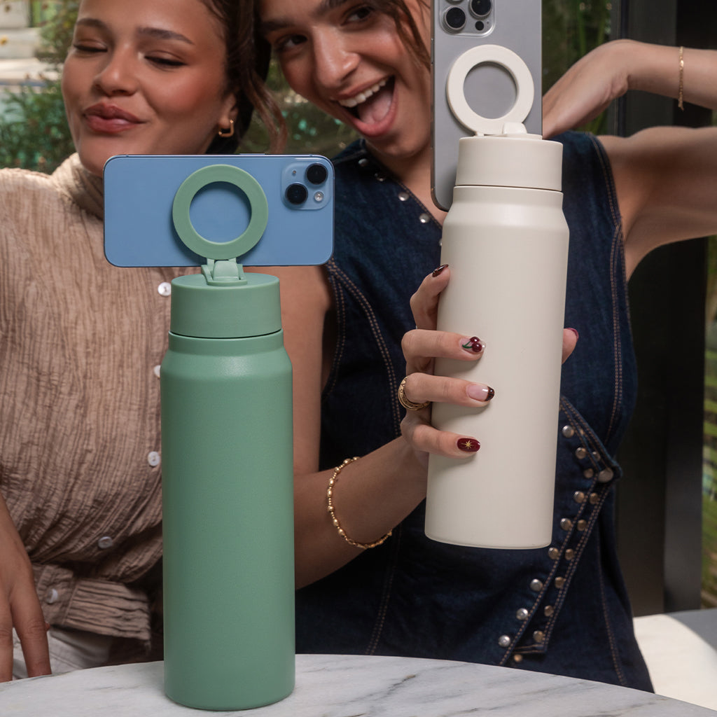 💧 زجاجة الميّة الستانلس مع حامل موبايل مغناطيسي – الحل الذكي لحياتك اليومية!