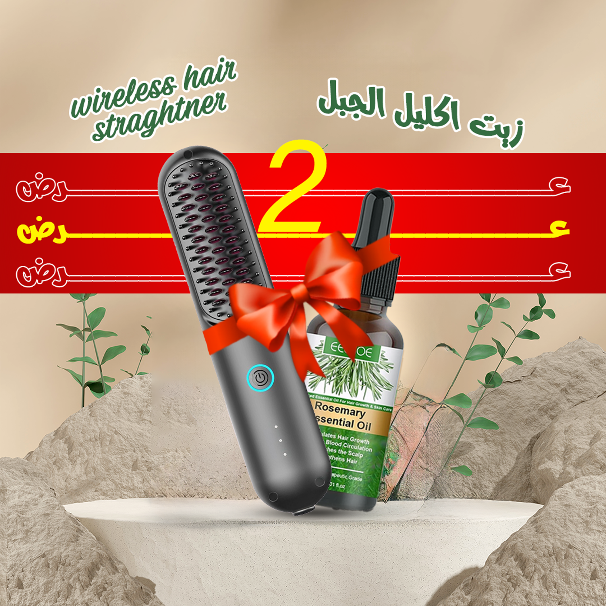 • 🔥 عرض خرافي! 🔥 مكواة شعر لاسلكية + زيت إكليل الجبل لشعر ناعم وقوي 💆♀️✨ احصلي على التصفيف والعناية بشعرك بسعر ولا أروع! 💖💨